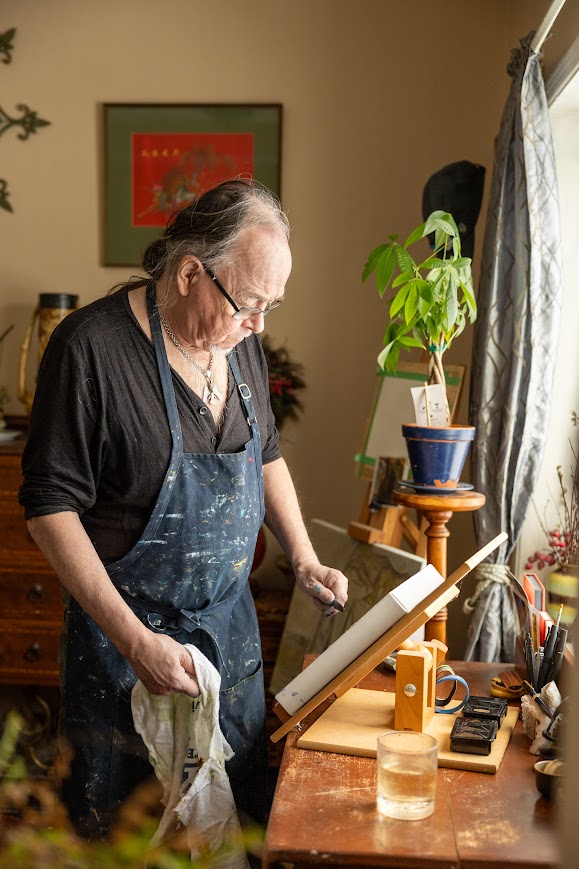 In his own words: I am a self taught Artist residing in Almonte. My work is predominantly landscapes. My medium is oil and watercolour, and most of all plein air. I project raw emotions of my inner being to create an emotional landscape, combined with colour and texture. Many works for this show are part of a series of paintings called Mill Falls.