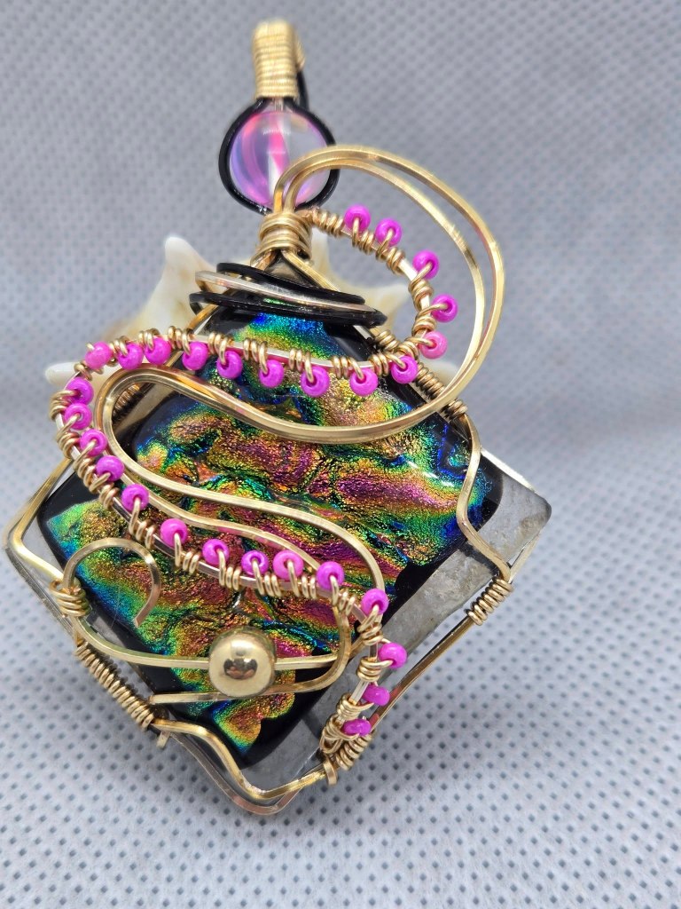 I began wrapping Dichroic glass after becoming a student of local glass artist Chris Van Zanten.