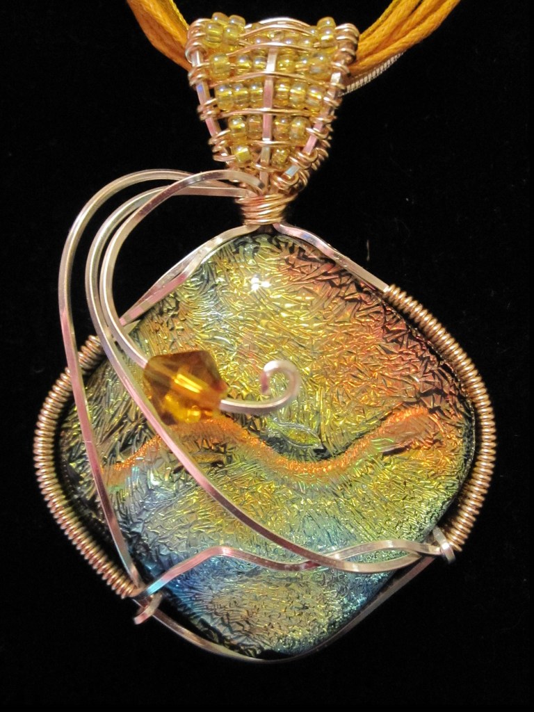 I began wrapping Dichroic glass after becoming a student of local glass artist Chris Van Zanten.