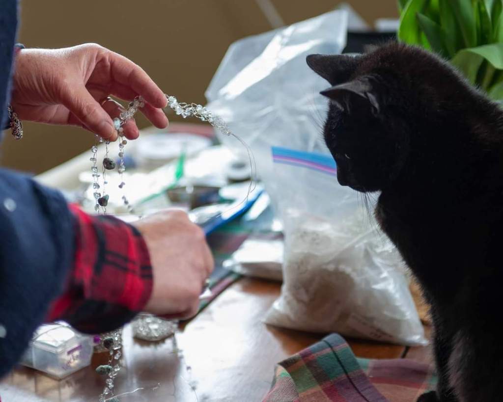 Kat’s designs evoke people, places, seasons, music and memories for her. And for her clients too: Kat loves to remake family jewelery into pieces that can be worn every day. She can give a fresh new look to that memory-precious string of our mother’s pearls or crystals many of us have stashed away in our jewelry box. Kat welcomes private commissions, which give her the great satisfaction of designing custom pieces tailored to the personality of her client, a special occasion, or as a perfect match for a favourite outfit.