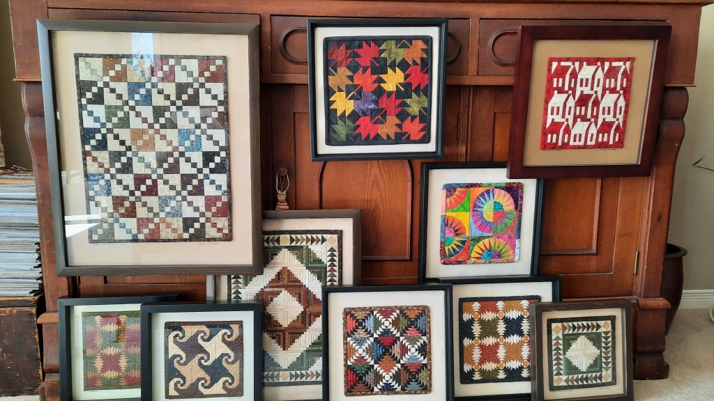 Spinning ahead in my life….I came across quilting. I quickly found that I didn’t have the patience or the space to make big quilts, so I started to make miniatures. I love the fact that being small, makes the quilts more than a piece of artwork, especially when they are framed and ready to be hung and admired.