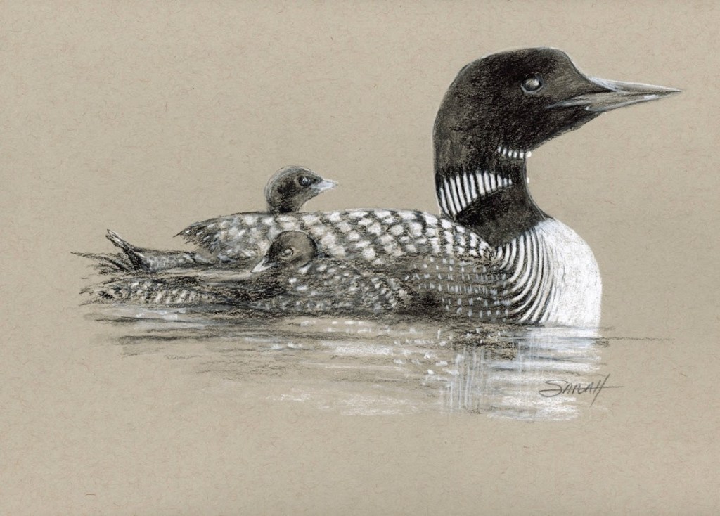 In her own words: I love the soft beauty and texture of classical drawings and the loose, misty, colourful style of street art. I love building texture and depth in charcoal and the fast and free abandonment of spray paint. I am inspired daily by the beauty of the Eastern Ontario landscape and often paint the flora and fauna that I see on my travels by road and water. Above all I am endlessly curious, and this curiosity has led to a wide style and subject range and some pretty unique techniques. While I have found myself envious of artists with a tight style, my range makes me perfect for wholesaling and licensing because clients have a lot of choice in me.